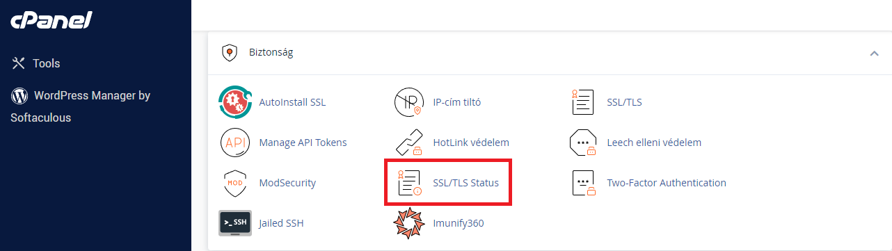 1.b , A tárhelyhez tartozó ingyenes Let’s Encrypt SSL településének ellenőrzése újabb cPanel verzión