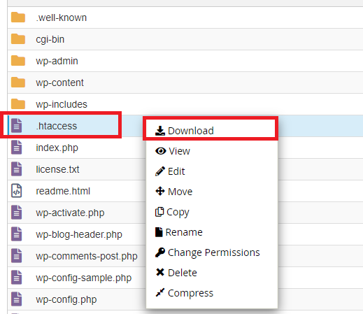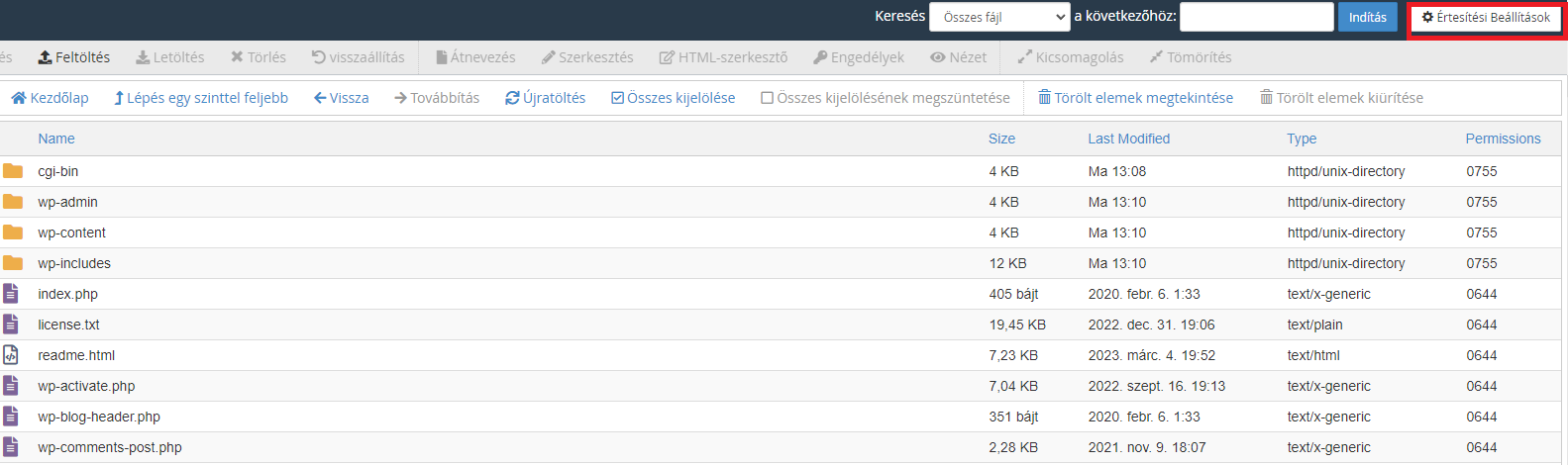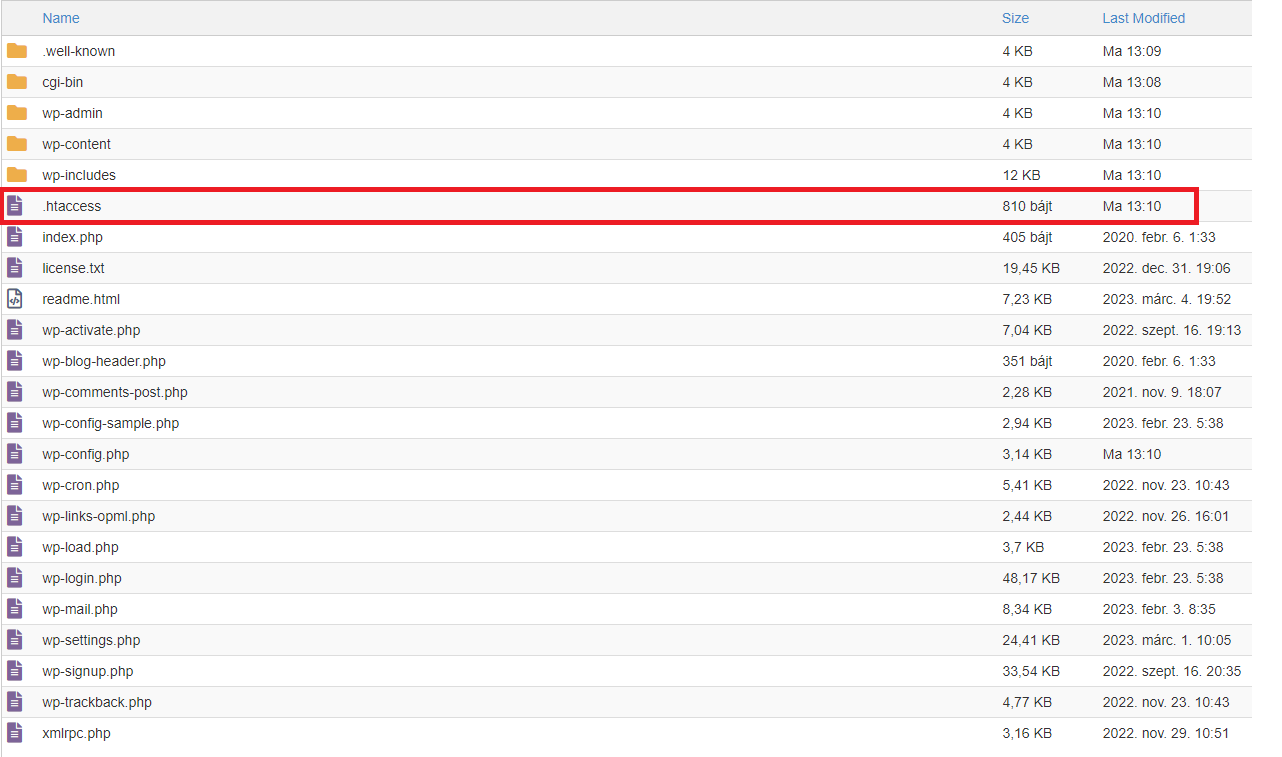 Így már megjelenik számunkra a .htaccess fájl a listában.