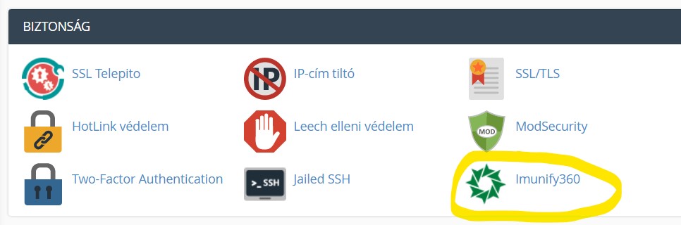 A rendszer cPanel felületen a Biztonság/Imunify360 menüpontra kattintva érhető el.