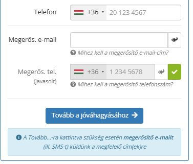 Kattintson a jóváhagyó linkre az e-mailben, illetve írja be az SMS-kódot az Ügyféladmin felületen.