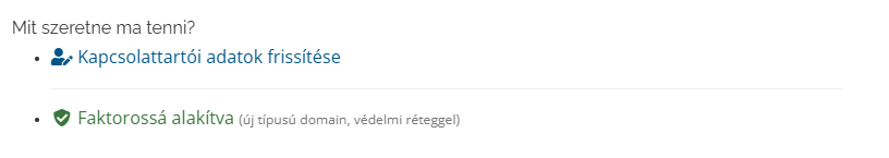 Sikeres jóváhagyás után a domain faktoros státuszba kerül.